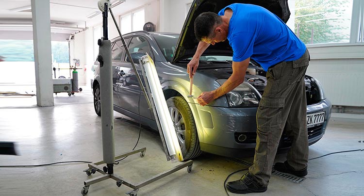 Mit einer lackschonenden Ausbeultechnik werden Hagel-und Parkschäden sanft und rückstandslos beseitigt.